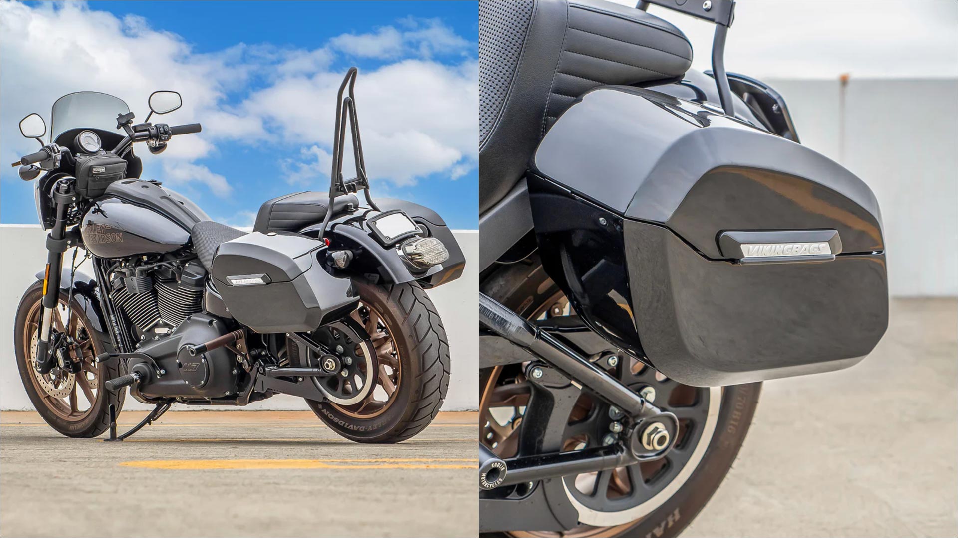 Viking Bags Darkin Large Quick-Mount Motorcycle Painted Hard Saddlebags for Harley-Davidson Softail Low Rider S FXLRS Features